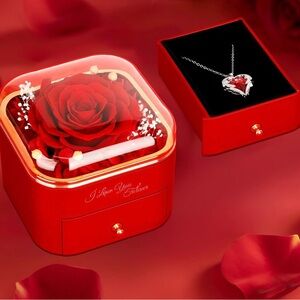 New Red Rose with Heart Necklace, Forever Flowers Gifts for Mom