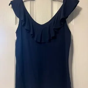 Lilly Pulitzer ruffle tank top in navy GUC size small. Smoke free cat friendly home with no access.