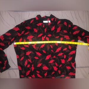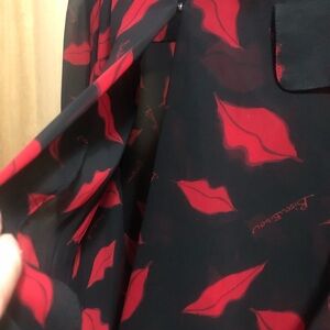 Bisou Bisou Black Red Sheer Lip Print Blouse XL