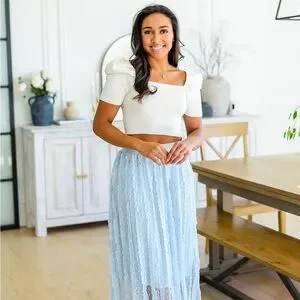 Take your wardrobe to the next level with this maxi-length A-line skirt! Featuring an elastic waistband and high-waisted fit, it's the perfect balance of comfort and style. The cascading ruffles and delicate swiss dot mesh overlay offer an extra stylish twist, sure to elevate any look. Let your style shine with this one-of-a-kind skirt!