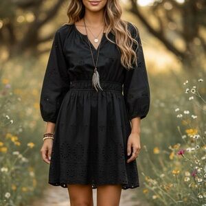 Universal Thread Black Eyelet Dress,Features,gathered waist,three-quartersleeves