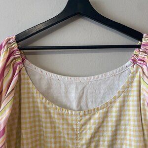 Handmade Plus Size Cotton Viscose Yellow White Gingham Pink Stripes Dress