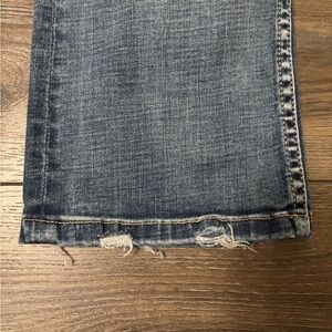 Stylish boot cut jeans by BKE. Light blue wash. Perfect for casual wear. Slim fit boot cut with distressed bottom