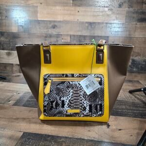Vera Bradley Small Ella Tote 18167-755905 Purse Faux Leather Maize Snake Print