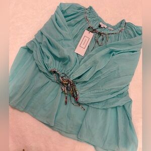 RHODE Jamie Top Aquamarine Blouse NWT