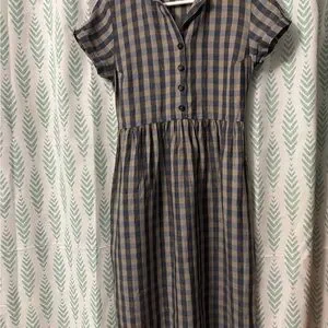 Discover effortless style with this chic plaid dress. The button-up design offers a blend of comfort and sophistication in blue and brown hues.