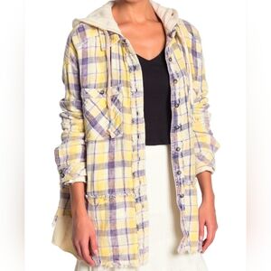 We The FREE Calico Basin Plaid Hooded Yellow Purple Oversized Shirt Size Small