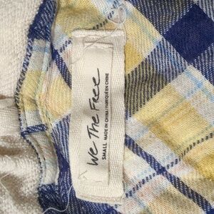 We the Free Calico Basin Plaid Hooded yellow/purple oversized Shirt women's size Small, used in good condition. Look at the pics for measurements and more details of the condition. Any questions let me know please .