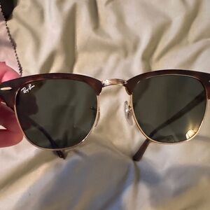 Elegant Clubmaster Ray-Ban sunglasses in the tortoise color in the black case with the gold logo. Includes cleaning cloth for easy maintenance. These glasses are in basically new shape! I love these and wish that I could still keep but my loss is your gain! Please don’t hesitate to ask me any questions! Thank you and Happy Poshing 😊😊