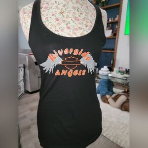 Harley Davidson District Black Tank Top with Orange and Gray Print