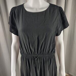 Loft Petites Women's A-line Black Short Sleeve, Lightweight Midi Dress Size LP