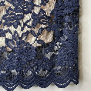 Excellent condition. Navy polyester lace with cream nylon/ elastane lining. Elastic waist. Scalloped hem. UK 16 = US 12