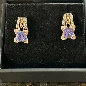 Elegant tanzanite and diamond earrings in 14k rose gold. Brand new! Final sale; no returns. See original tag in photo.