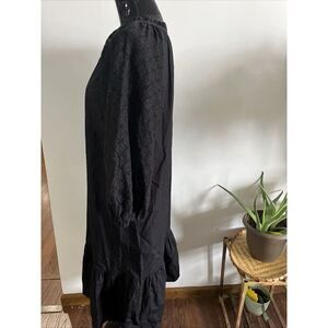 This black long sleeve tunic dress from Gap is a versatile addition to any wardrobe. The A-line style and V-neckline complement the balloon sleeves made of lace, adding a touch of elegance to the dress. Made of 100% cotton canvas fabric, this midi dress 40" from shoulder to hem) is comfortable to wear and easy to care for.