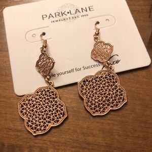 These lightweight, filigree earrings are a jewelry wardrobe staple! At 2 1/2” in length, they perfectly transition from day to night. Available rose gold.