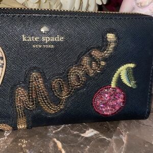 Collectible KATE SPADE YORK APPLIQUE EMBELLISHED ZIP-AROUND LONG WALLET