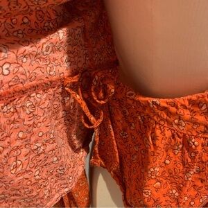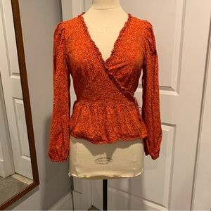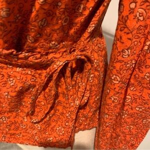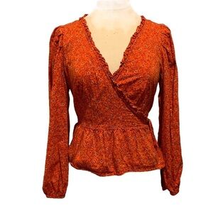 Universal Thread Burnt Orange Floral True Wrap Long Sleeved blouse top Medium