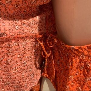 Very cute floral print wrap top. Not a faux wrap. One side wraps to tie on the inside and other side wraps over to tie on the outside.