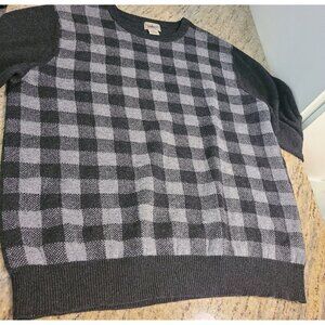 LL Bean Mens Size L Reg Gray Black Check Wool Sweater 291638