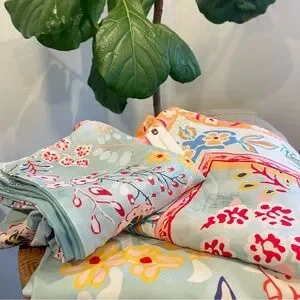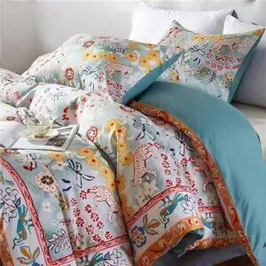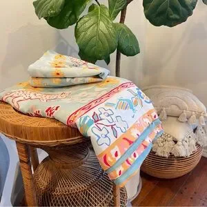 NEW Anthro Blue Jungle Multicolor Boho Queen / King Bedding Duvet & Sham Case