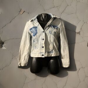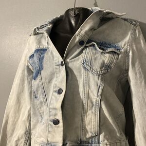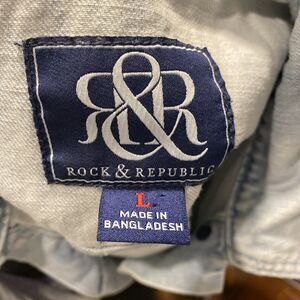 Rock & Republic Women's Acid Wash Denim Jacket SZ L Distressed Crop
