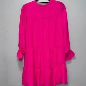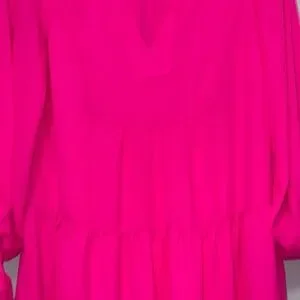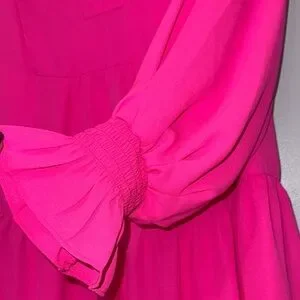 Hot Pink dress with elegant long sleeves. Ideal for a standout look. A-line dress from CeCe, a solid-color style framed at the sides with dramatic long balloon sleeves.