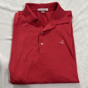 This polo embody elegant ease in a casual silhouette. An intricate garment dye and garment wash creates rich, deep colors and striking softness, while the slub texture conveys a relaxed quality. Can be used untucked or tucked in. Mother-of-pearl buttons. Like new in a red pear color.