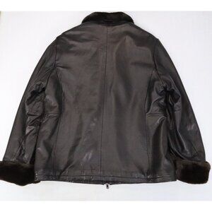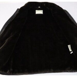 ORVIS Brown Soft Leather Faux Fur Lined Coat Womens Sz L Full Zip Smooth Collar