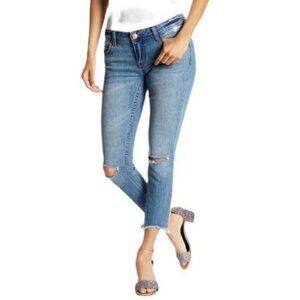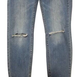 Free People Mid Rise Distressed Busted Knee Skinny Cropped Jeans Size 28 EUC