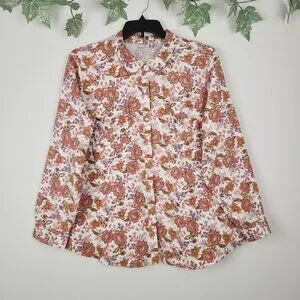 Joan Rivers Size XL Floral Print Flannel Long Sleeve Cotton Women's Top Blouse