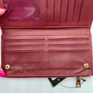 Badgley Mischka Womens Vegan Leather Long Card Wallet Wine Red Quilted NWT