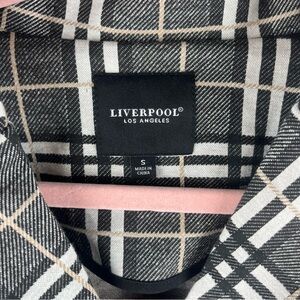 Liverpool Women’s Jacket Check Plaid Size S Button Up Black Cream Pockets Flawed