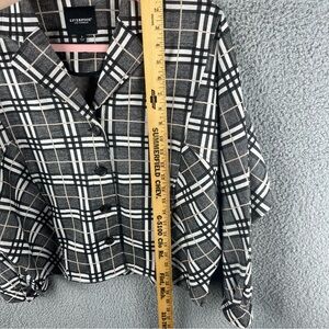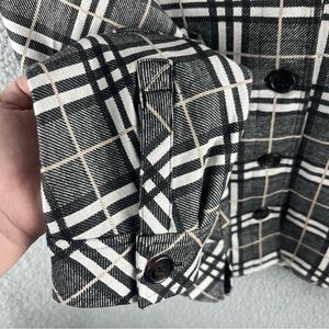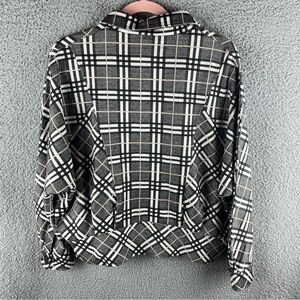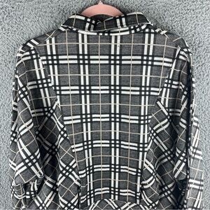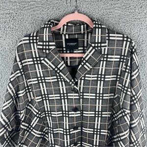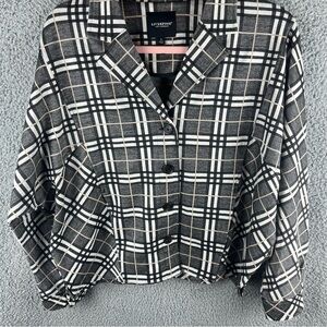Liverpool Women’s Jacket Check Plaid Size S Cocoon Button Up Black Cream Pockets