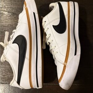 Nike boys / “fits ladies size 7 “White and Black Sneakers with Gold Accents