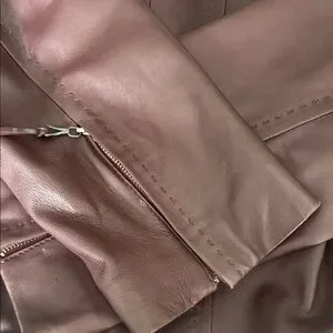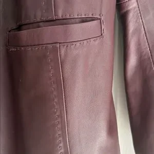 Sleek and stylish leather jacket. Rich burgundy color. Ideal for versatile wear. 2front pockets. Detailing- Zippers on cuff