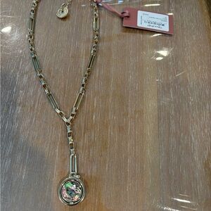 Stylish gold necklace with a striking abalone double sided pendant. Adds elegance to any look. Gift with purchase item new with tags .