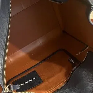 Elegant dark blue tote by Marc Jacobs. Features sturdy leather and spacious interior. Perfect for daily use.