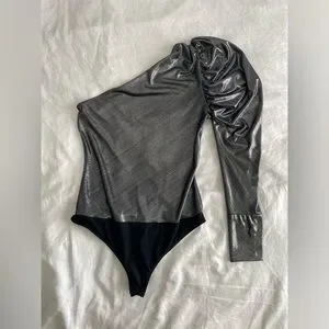 Shine in this stunning silver one-shoulder top. Perfect for a night out, this top adds a touch of glamour to any outfit.