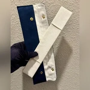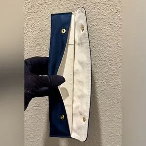 Navy blue & beige soft suede like material on both the exterior and interior of case