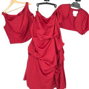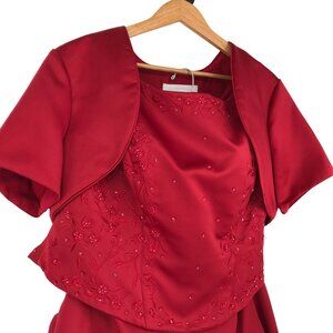 Alfred Angelo Three Piece Bridesmaid Dress Red Short Sleeve Jacket Womens 20