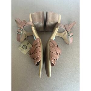 NWT BORN Shonie Brown Soft Leather Block Heel Buckle Ankle Comfort Sandals Sz 10