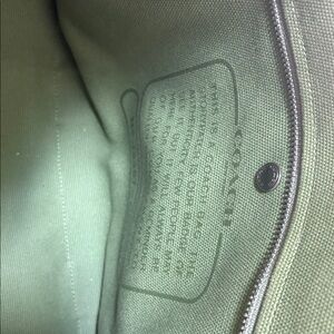 Stylish green crossbody bag by Coach. Features signature logo design. Perfect for everyday use. It’s does have a stain on the bag. From clothes and on the side. Need to be cleaned out in the side. Due to wearing the bag before. I brought from someone else. Great bag cleaning out my closet.