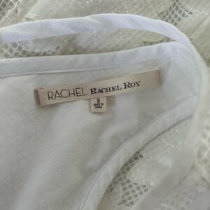 Gorgeous white sleeveless mini dress by Rachel Roy. Lined with floral/lace cut out fabric.