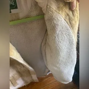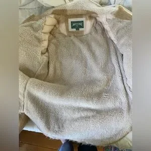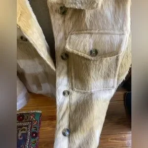 American Eagle oversized Shacket with sherpa collar and faux fur lining- very heavy and warm. Extremely oversized and could easily fit a small or even medium- please see measurements in photos. Only flaw noted is a hole in the top of the faux fur lining near the tag that is not visible when worn. No stains or other obvious wear noted. High quality Shacket perfect for fall and winter! Just a little more oversized than I would like so only wore it a handful of times.