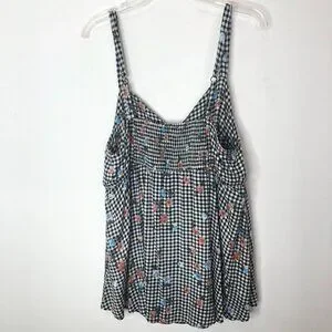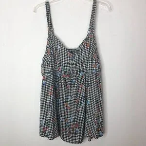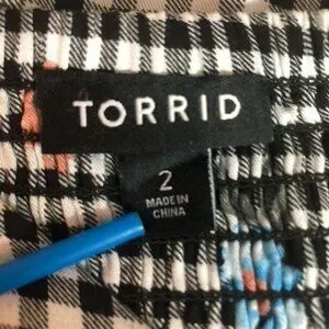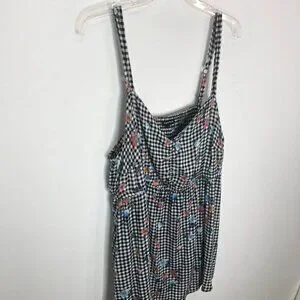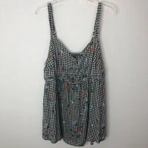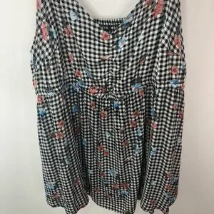 Torrid Womens Floral Gingham Top Size 2 18-20 2X Rayon/Spandex Black/White