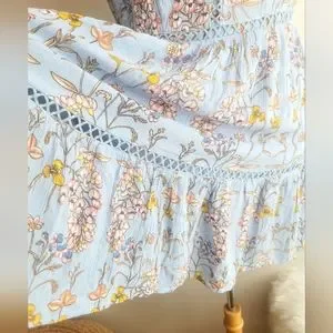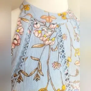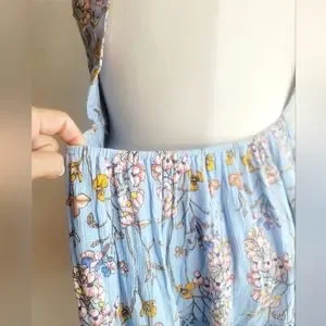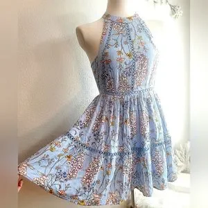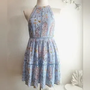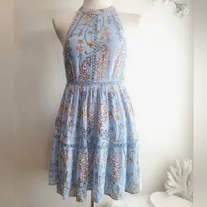 ABEL THE LABEL BLUE FLORAL FIT & FLARE JAASE BACKLESS HALTER MINI DRESS SZ SMALL