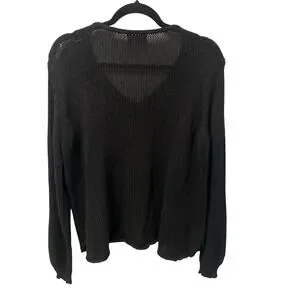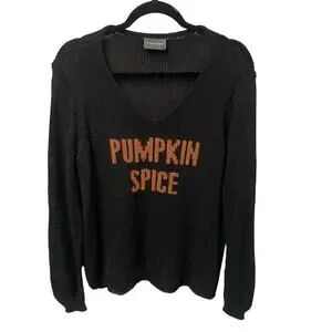 Wooden Ships V Neck Pumpkin Spice Print Black Knit Sweater Womens Small / Medium