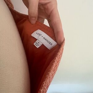 Lost + Wander Terracotta Gingham Wrap Blouse