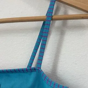 Stylish blue and purple jumpsuit with a sleek design. Perfect for casual outings or workouts.