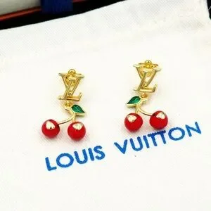 Elegant gold earrings featuring vibrant red cherries and green leaves. Perfect for a playful touch.